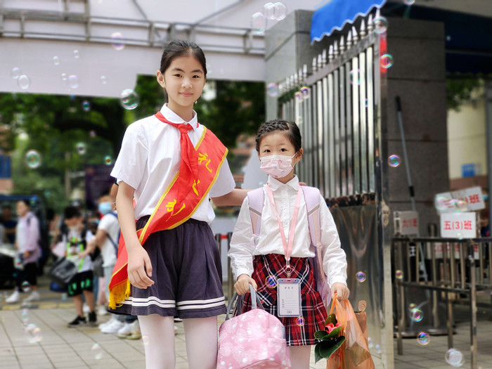 “太阳当空照,花儿对我笑,小鸟说,早早早,你为什么背上小书包?我去上学校,天天不迟到,爱学习爱劳动,长大要为人民立功劳……”随着欢快的音乐声和漫天飞舞的七彩泡泡,五河新村小学迎来了一个个背着书包返校的孩子们,他们用轻快的问早声、明媚的笑容打开了新学期序幕。